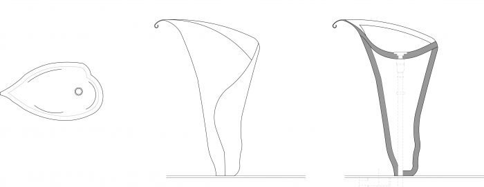 Καλλιόπη prende ispirazione da un particolare tipo di calla: la calla nera. Per ricreare le sfumature naturali del fiore è stata fatta, quindi, un’attenta analisi sulla scelta dei materiali; da qui l’uso di Marmo-Resina -Eustone-