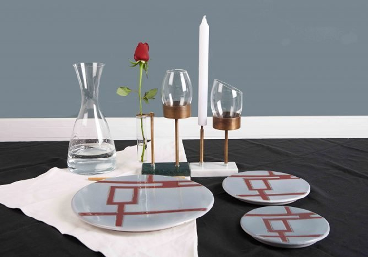 Mi sono confrontato con diversi materiali: ottone, vetro, marmo e ceramica. Ogni singolo materiale è stato studiato e lavorato con piccoli artigiani. Ho lasciato la mano libera disegnando con l’aiuto del cuore