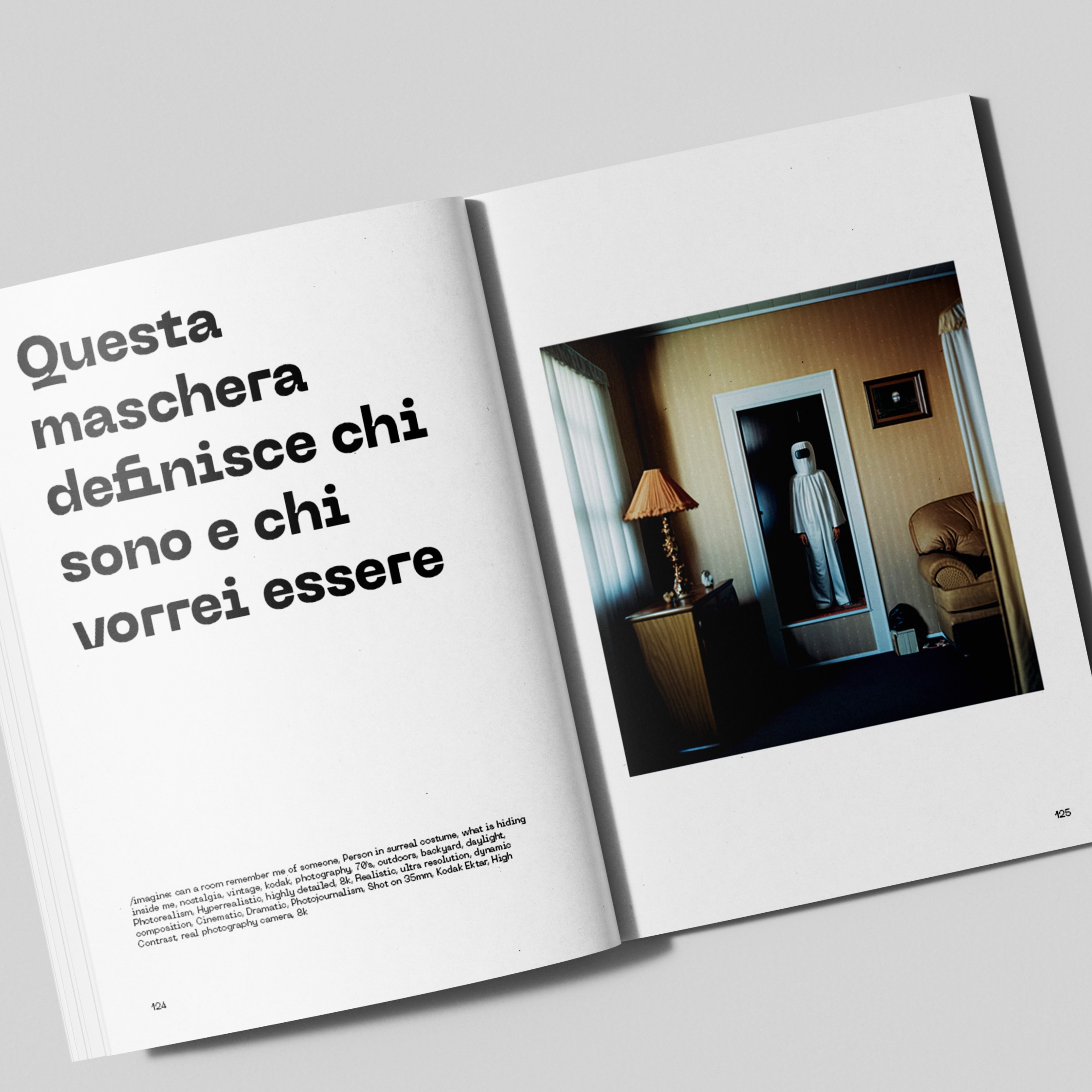 “La tesi si articola in tre serie fotografiche, ognuna con un tema distinto. La prima serie esplora il concetto della maschera, indagando la percezione dell’essere umano tra forma e identità. La seconda serie si immerge nelle emozioni, cercando di rappresentare le percezioni umane attraverso scenari tipici. Infine, la terza serie, si focalizza sulla decontestualizzazione emotiva, mettendo in luce la contrapposizione tra stato d’animo e ambiente.”