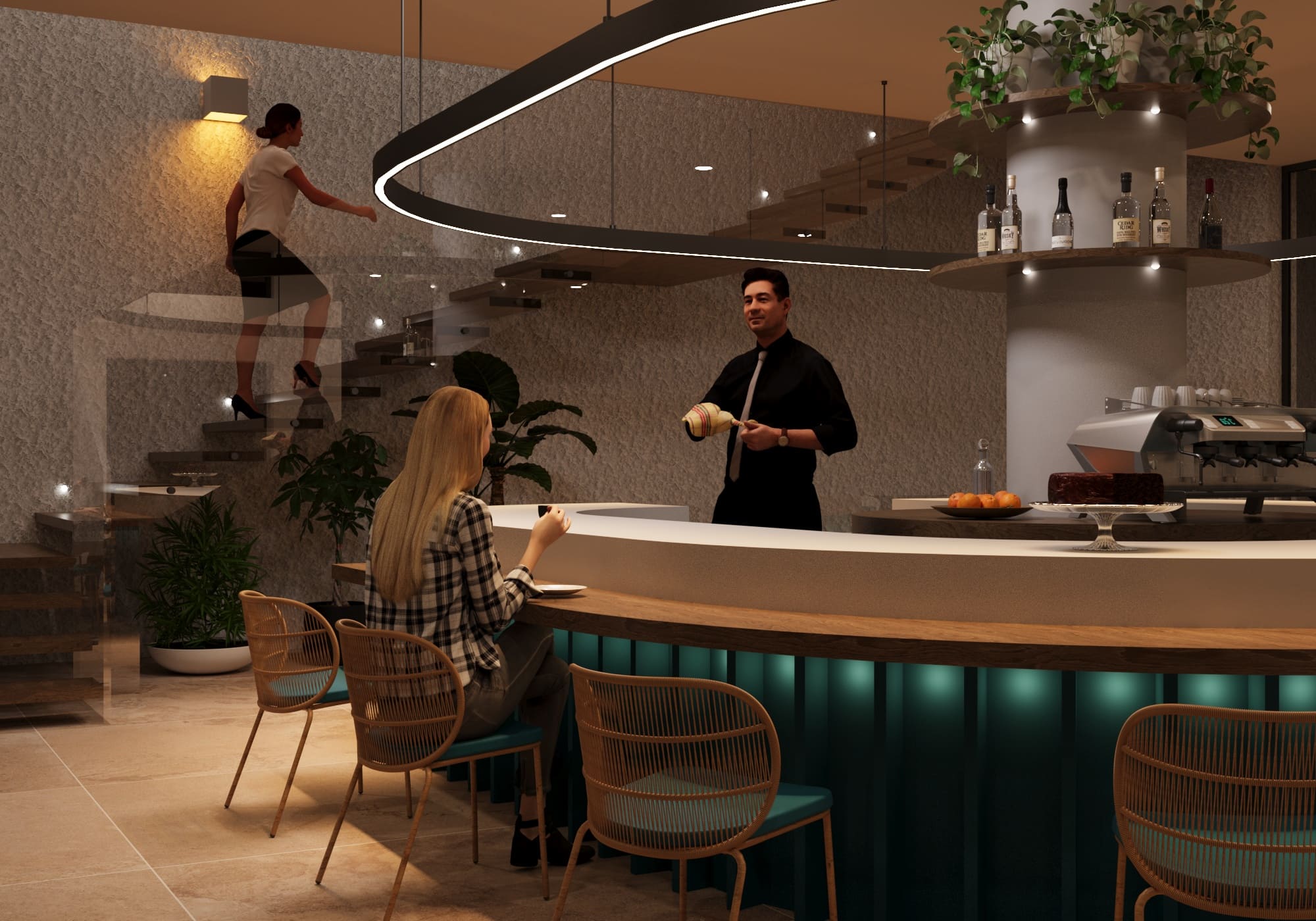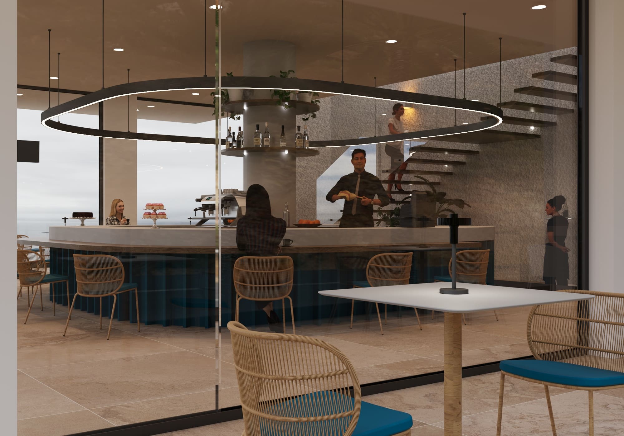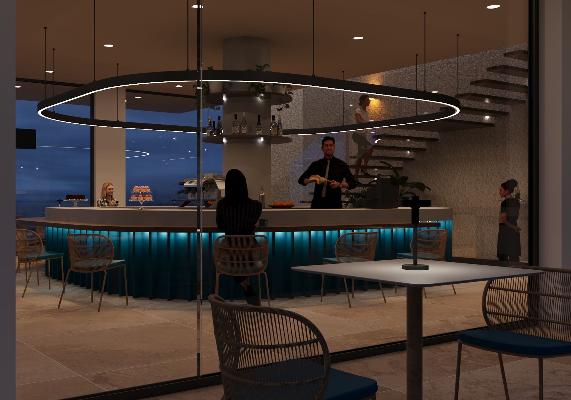 il concetto di sospensione, ripreso sia con la struttura principale che con le piattaforme all’esterno;