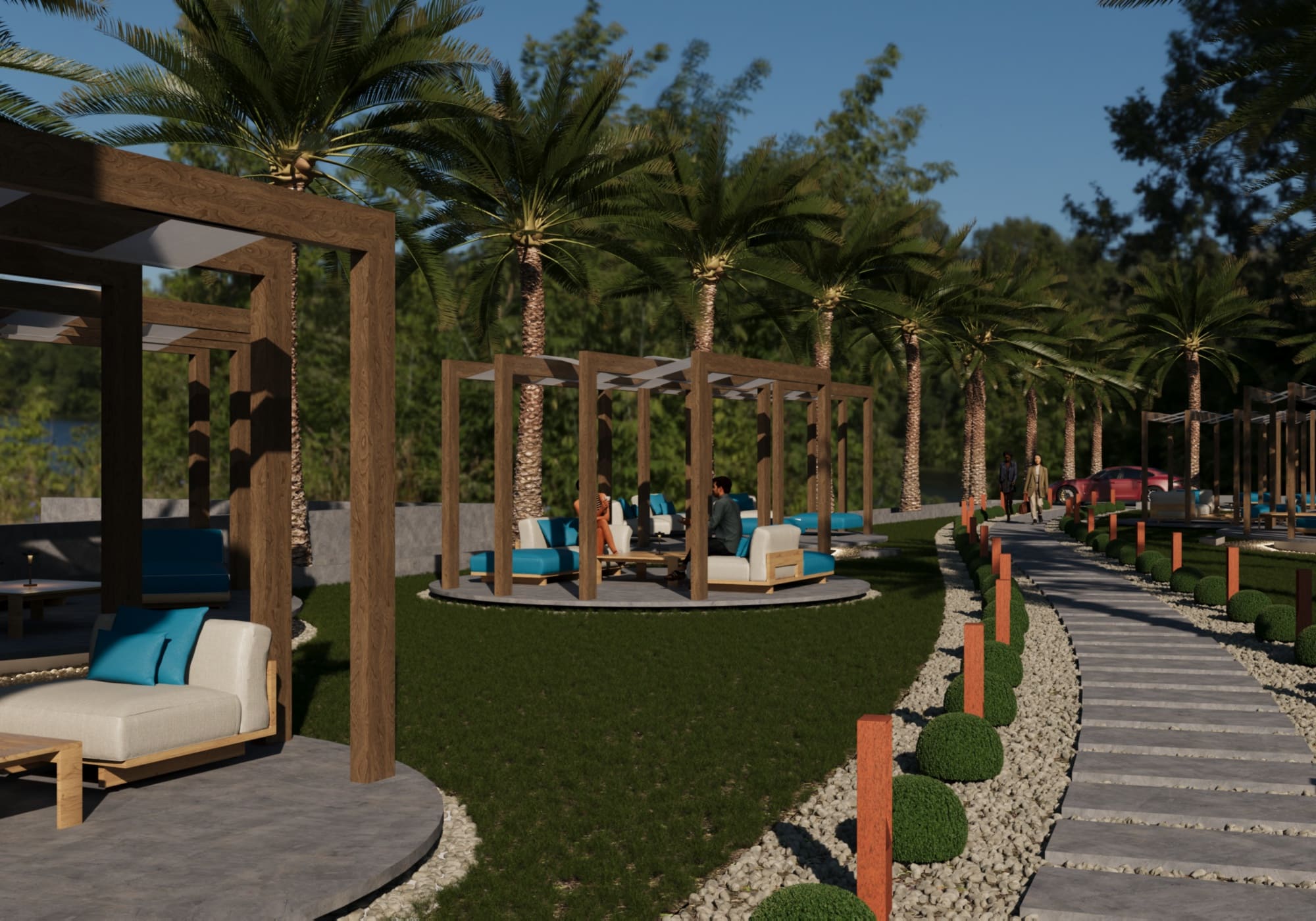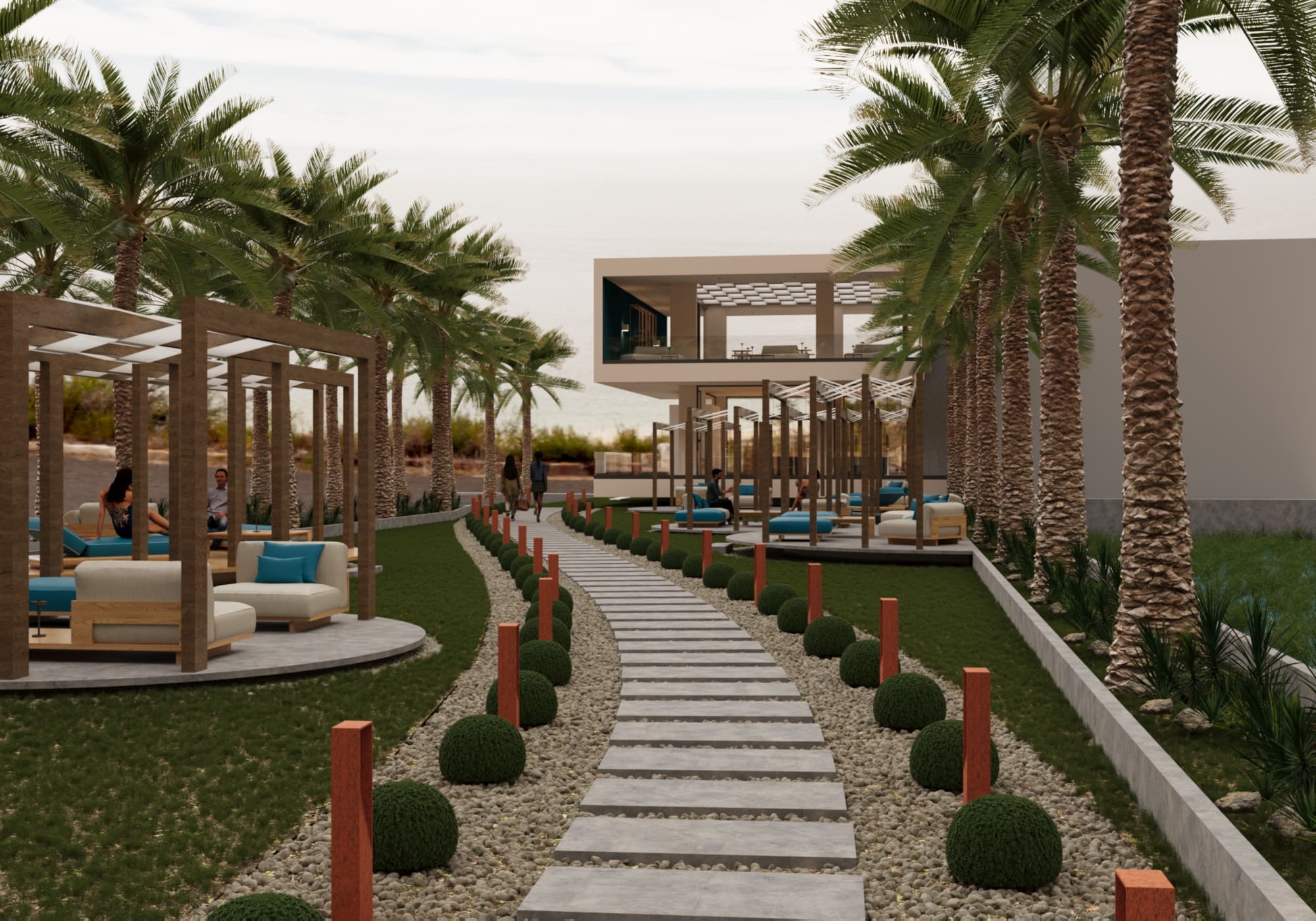 l’uso di colori neutri con l’aggiunta di un colore dettaglio, che richiamano il territorio circostante.